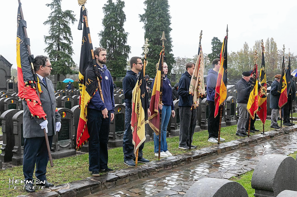 In de regen, samen met de oud-strijders, droegen we de vlaggen met trots en respect.